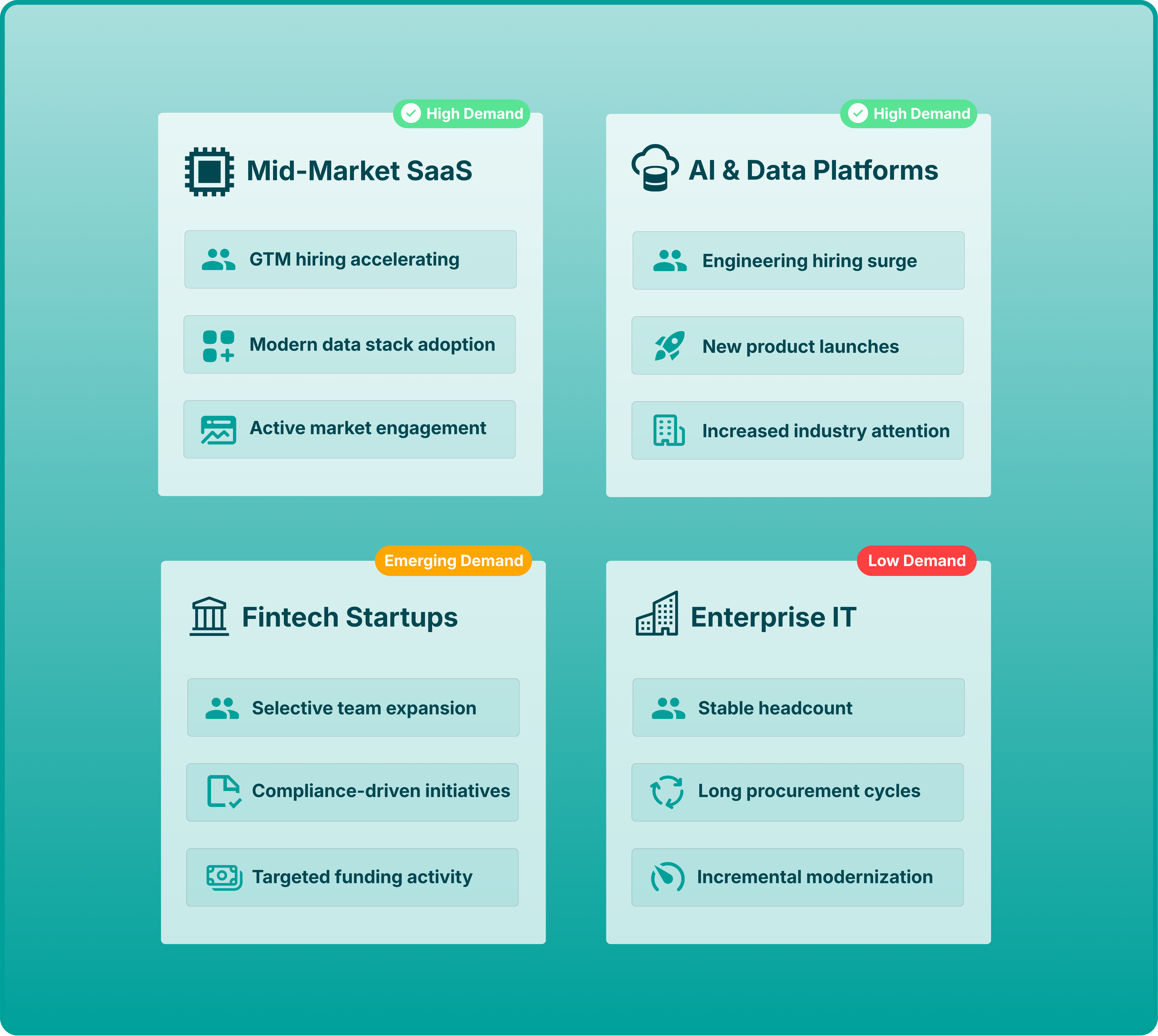 Identify which market segments are showing increased activity and direct effort toward areas with emerging demand.