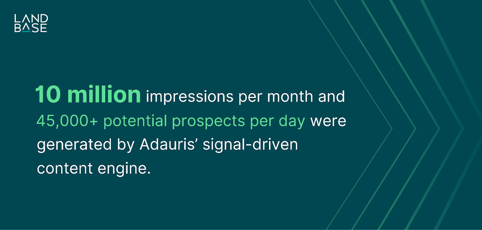 Adauris’ signal-driven content engine generated over 10 million impressions per month and identified 45,000+ potential prospects per day(2) during its early campaigns. As Adauris’s co-founder, leveraged content outreach in a very targeted way – a practice I continue now at Landbase. Here’s a specific example of how I turned a LinkedIn post into pipeline: