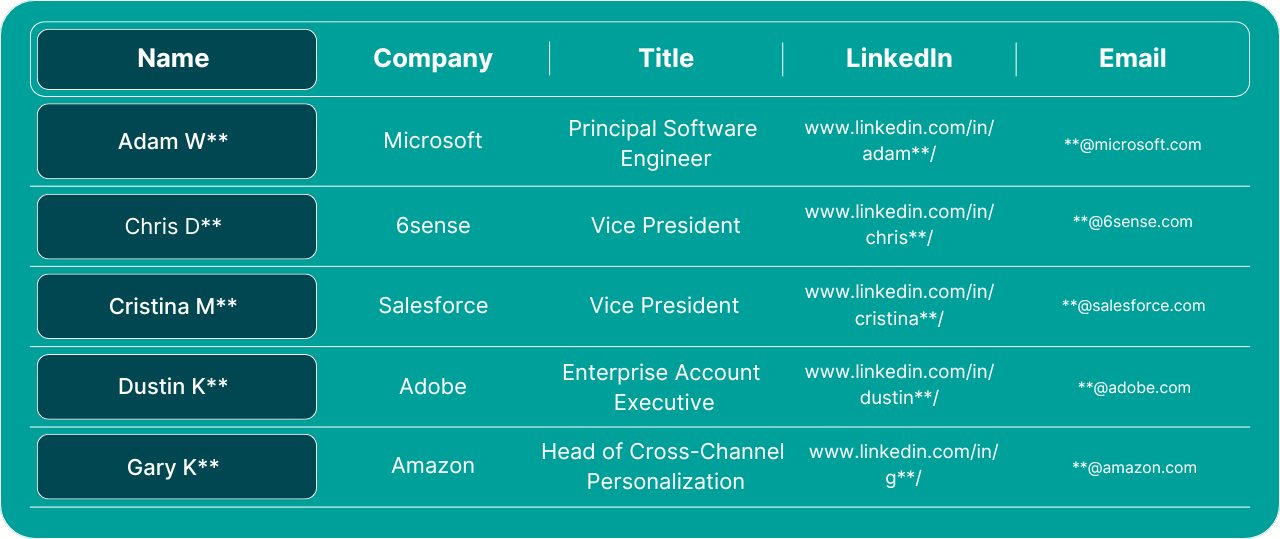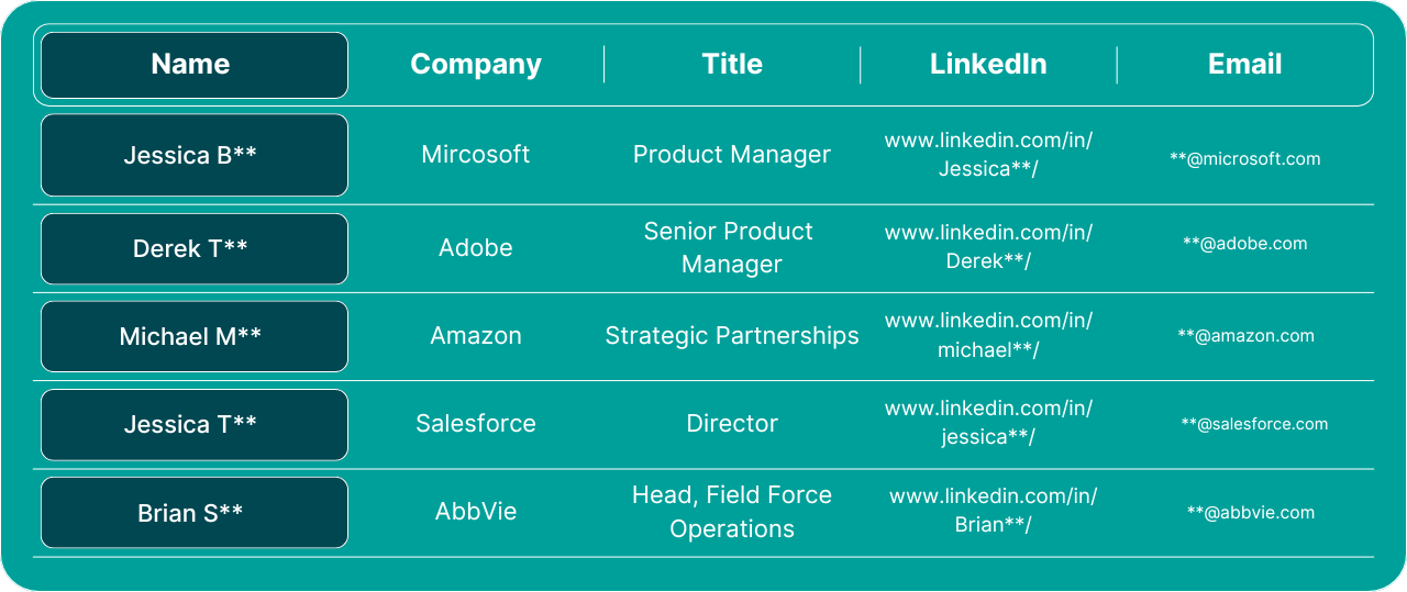 Access 300+ verified Dreamforce 2025 attendee contacts from department heads at leading companies like Amazon, Google, and Microsoft. Download the full Head-of Attendee List today.