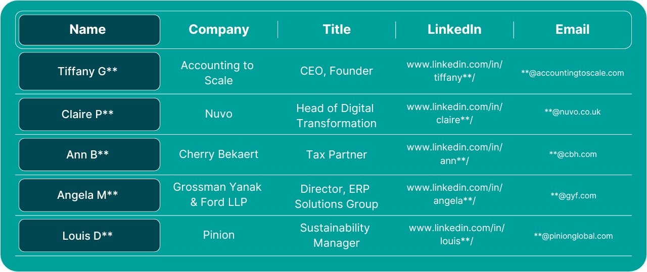 Access verified Dreamforce 2025 attendee contacts from accounting and finance leaders at top firms driving digital transformation.