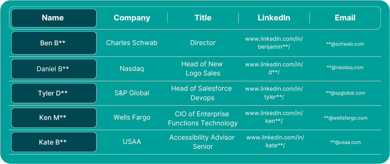Access verified Dreamforce 2025 attendee contacts from executives and specialists at top global banks and financial institutions.