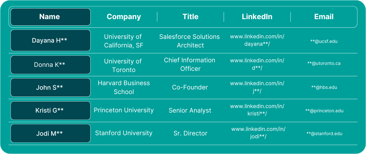 Access verified Dreamforce 2025 attendee contacts from executives and technology leaders at leading universities and research institutions.