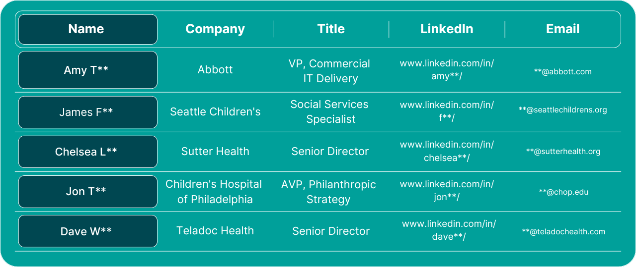 Access verified Dreamforce 2025 attendee contacts from executives and leaders at top hospitals, health systems, and care organizations worldwide.