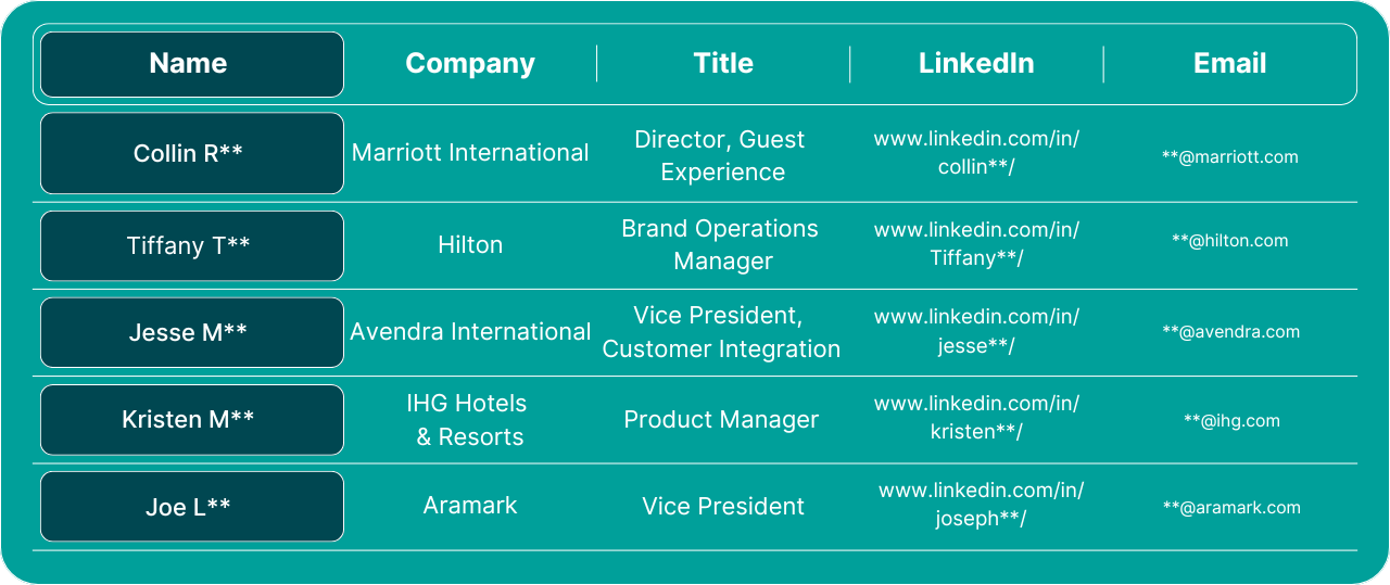 Access verified Dreamforce 2025 attendee contacts from executives and operations leaders at top hotel, travel, and hospitality tech companies.